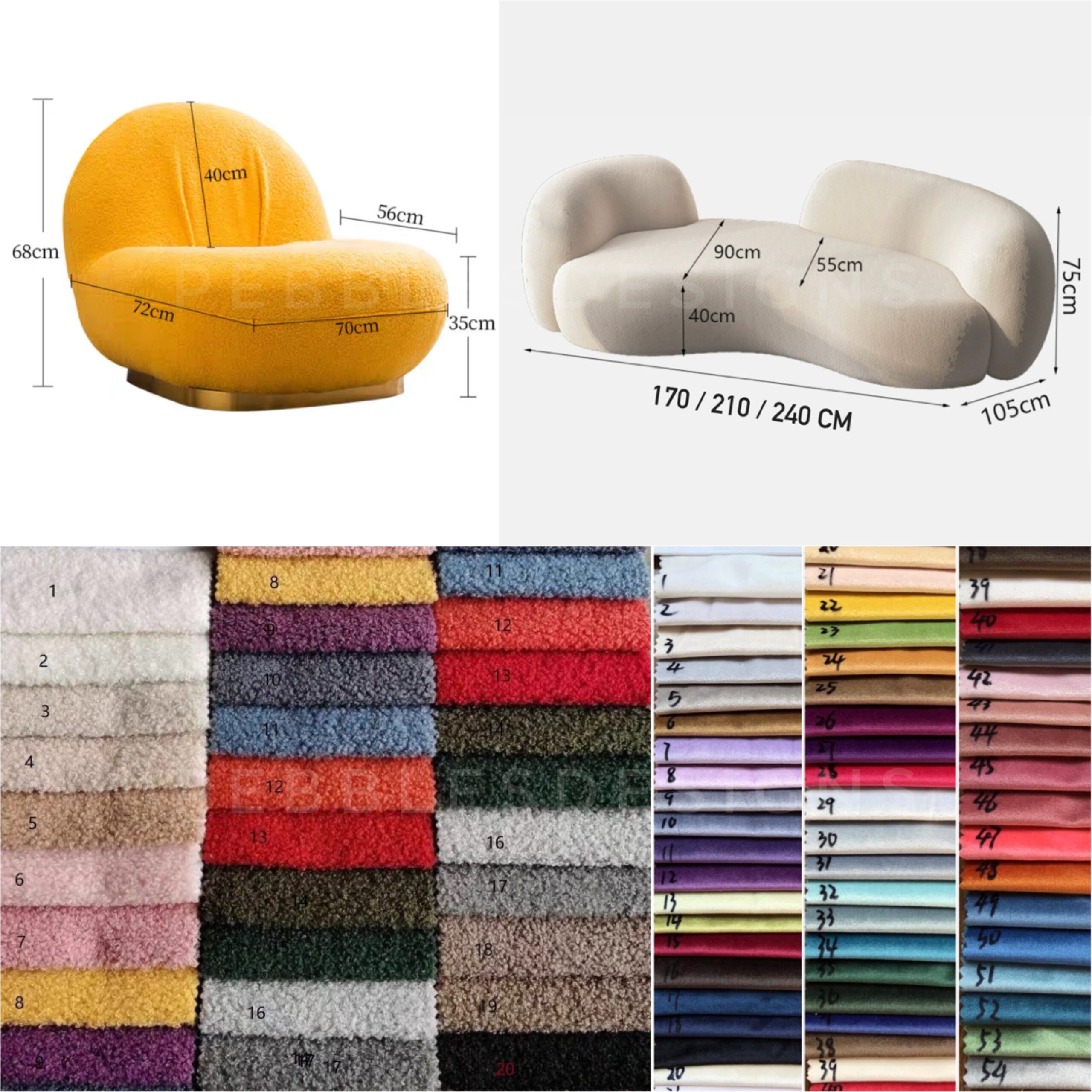 Composition : Synthetic sheep-wool / Velvet upholstery